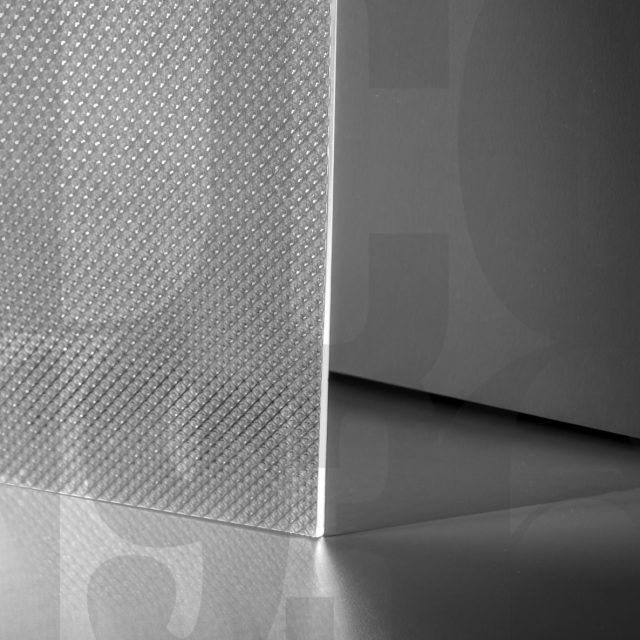 Gran poder de refracción lumínica, debido a que una de sus caras tiene textura en punta de diamante.