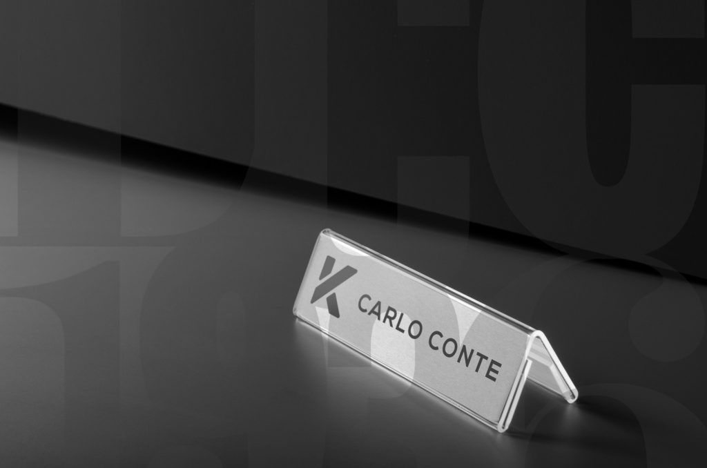 PORTA NOMBRE DE ACRILICO ESTILO CARPA.-